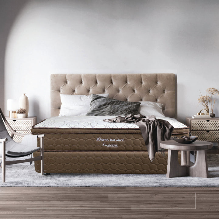 The Osteo Balance mattress, proudly made in New Zealand, is designed to deliver firm support and exceptional pressure relief. Experience the comfort and stability of a 5 Zone Individual Pocket Spring system that provides targeted support, especially for your lower back.