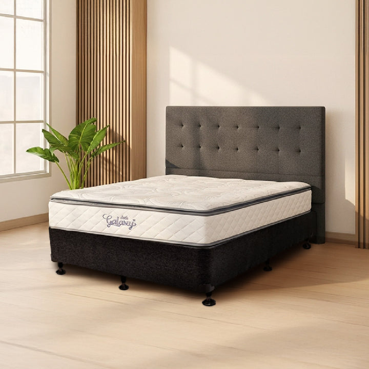 Find your comfort zone with the Galaxy Medium Bed with Headboard — crafted for those who love balanced support and effortless style. The medium-feel mattress cradles you perfectly, while the upholstered headboard adds sophistication and warmth to your bedroom retreat.