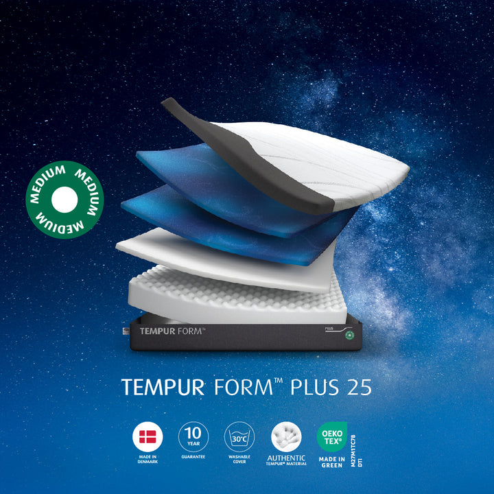 With even more TEMPUR material inside, the Plus Form 25 Medium provides enhanced adaptiveness, delivering tailored comfort that’s uniquely suited to your body’s needs.